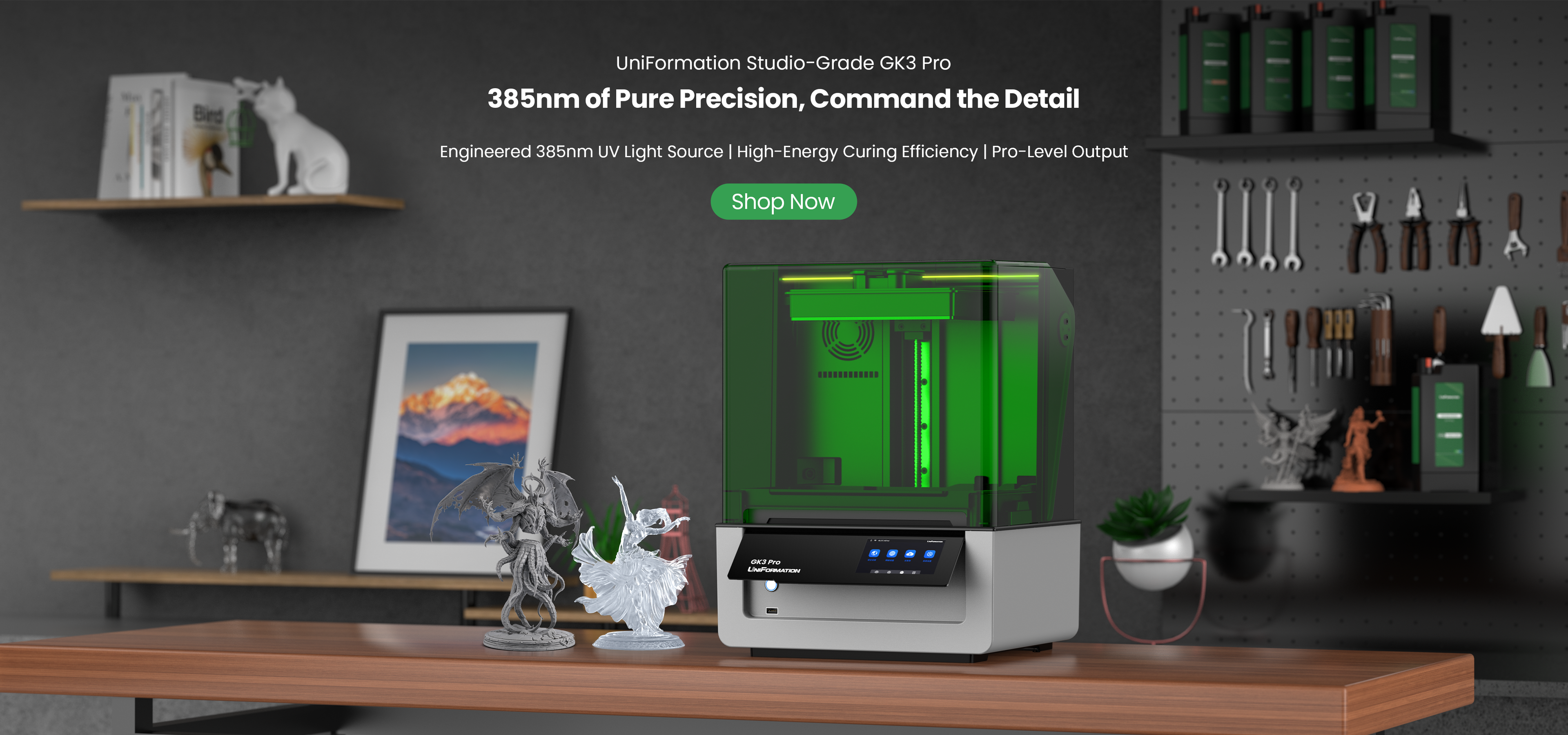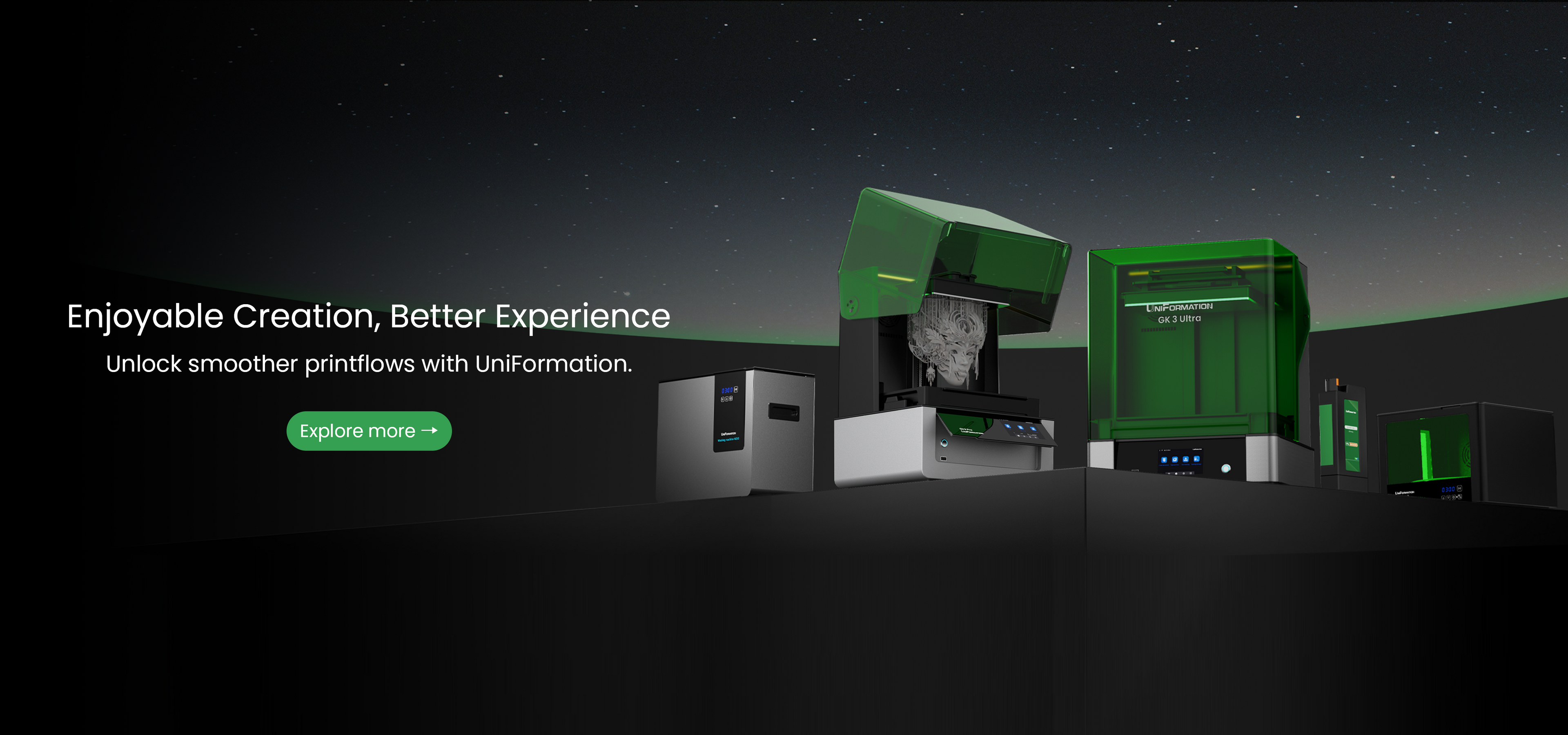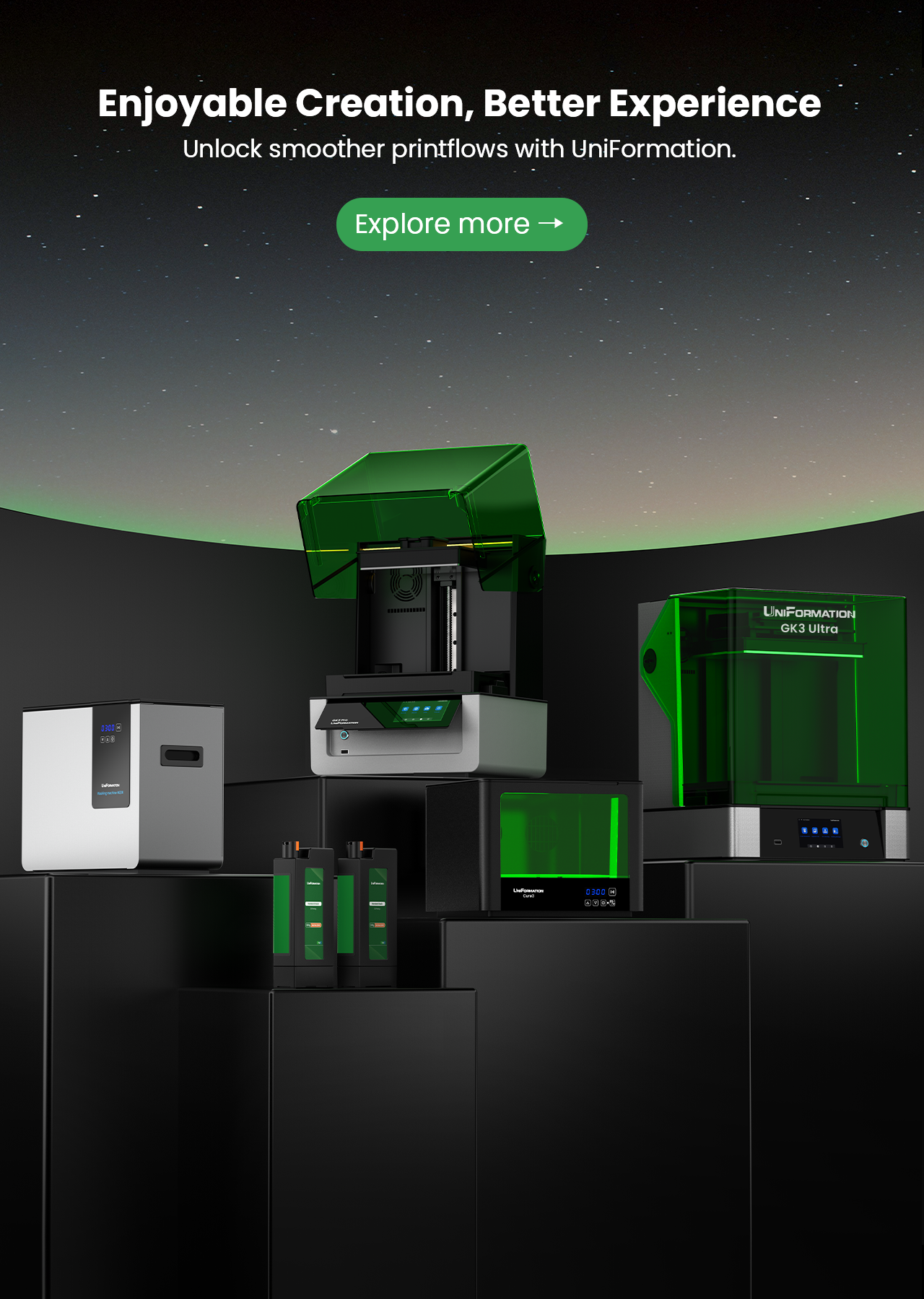 At Uniformation, we specialize in UV-curing 3D printing technology—not just to push boundaries, but to break them. We’re building a future-proof ecosystem where high-precision tools meet intuitive design, empowering makers, studios, and creative minds to bring their ideas to life with less friction and more control. From print to post-processing, every product we engineer is made to simplify complexity, accelerate innovation, and elevate the joy of making.