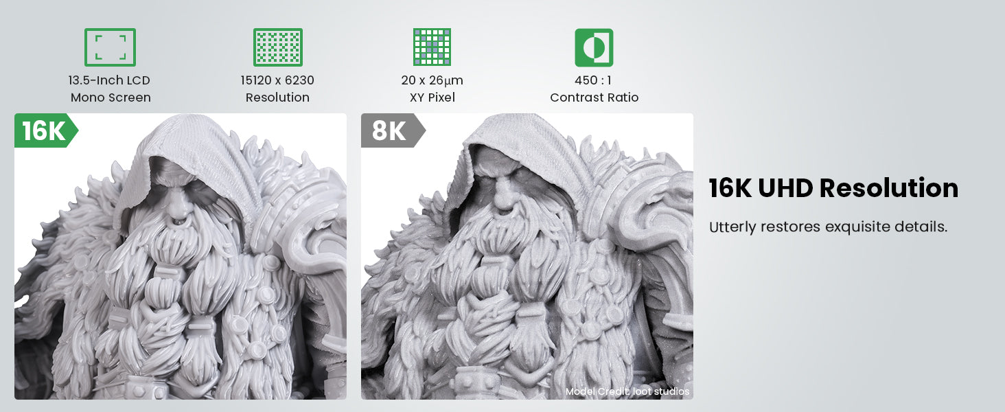 | Screen size | 302.4×161.98mm (16K 13.5″) | Official resin compatibility |